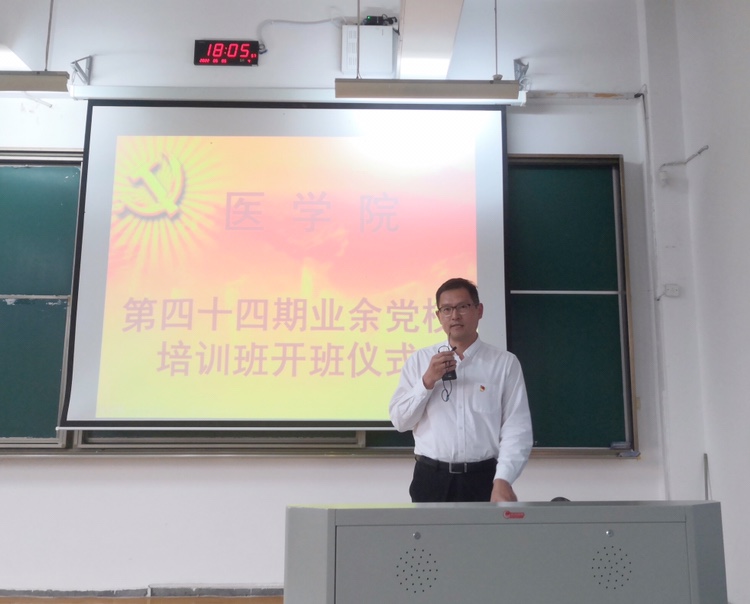 2022年5月5日晚6点,医学院举行第44期业余党校开班典礼,医学院党委书记陈云飞、党委副书记李联钊、学工办主任赵丽萍出席,150名党校学员参加,典礼由学院专职党务主管江欢主持。