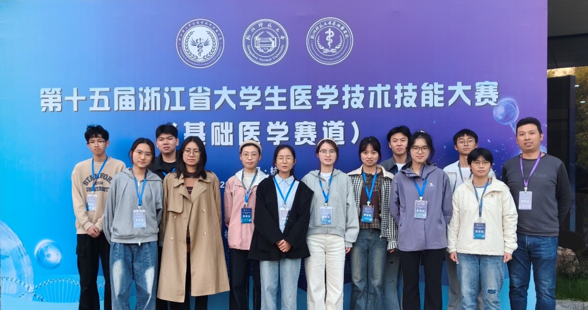 2025年11月14-15日,由浙江省大学生科技竞赛委员会主办、杭州师范大学承办的第十五届浙江省大学生医学技术技能大赛(基础医学赛道)在杭州师范大学仓前校区圆满落幕。我院经过精心组织的校赛,从13支队伍中选拔3支队伍与来自全省13所医科类院校的36支队伍同台竞技。