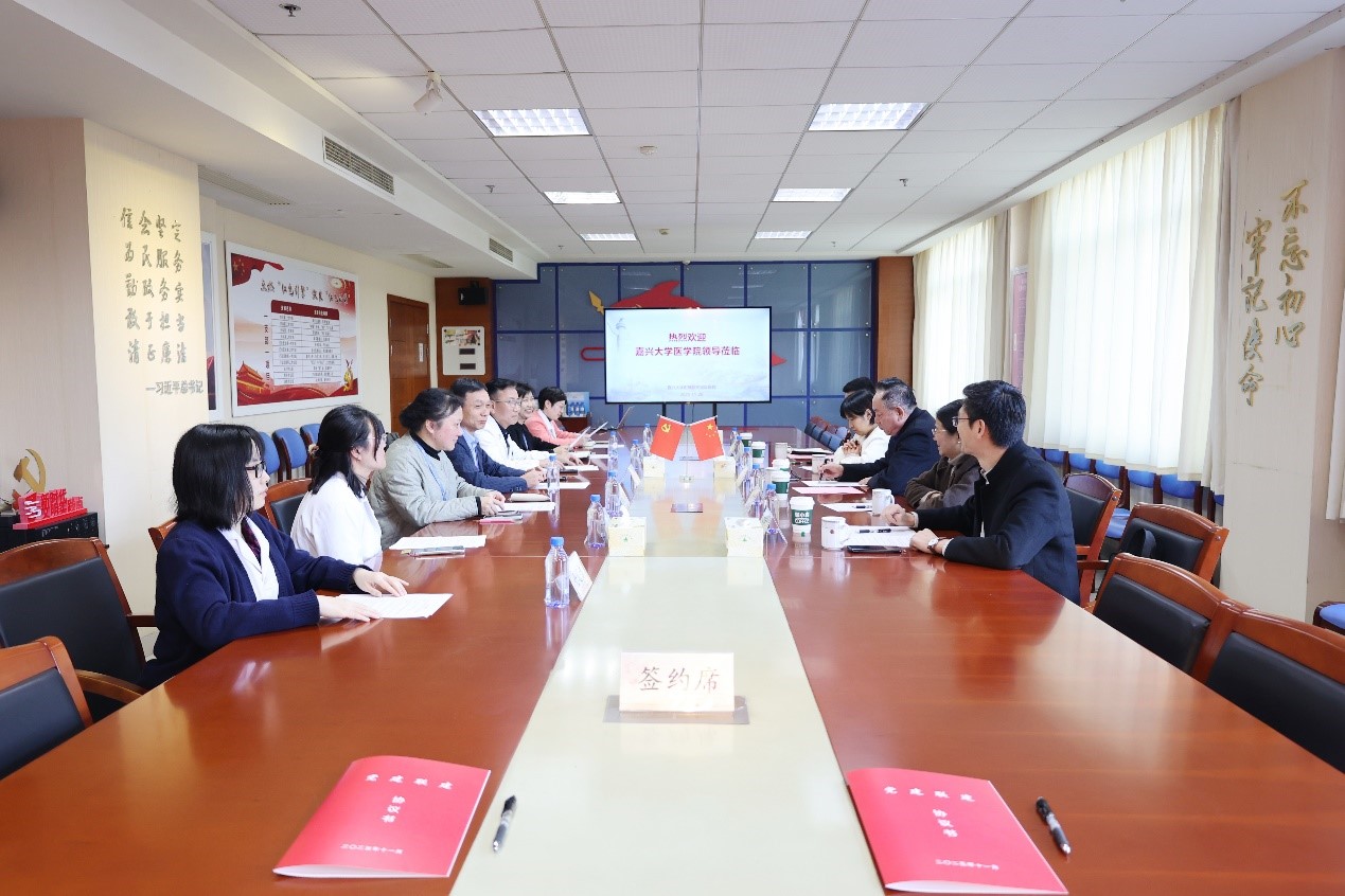 2025年11月20日下午,基础医学部党支部党员代表,与浙江新安国际医院开展“党建+医学人文”特色品牌党建联建交流活动。活动聚焦人口老龄化社会问题,通过专题研讨、协议签署及临床观摩,探索党建引领下的医学人文实践新路径,医学院党委书记陈云飞参加了联建活动。