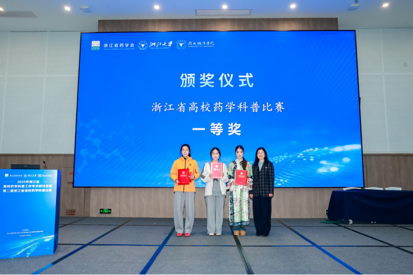 12月6日,2025年浙江省高校药学科普工作学术研讨会暨第二届浙江省高校药学科普比赛在浙大城市学院落幕。本届赛事汇聚了来自全省13所高校的21支团队同台竞技。我校医学院学子凭借卓越的科普创新能力和扎实的专业素养,在激烈竞争中脱颖而出,最终荣获一等奖1项、三等奖1项及优胜奖1项。这一成绩不仅是对学生能力的肯定,更是医学院长期探索并践行“以文化人、以德育才”理念,推动文化德育与专业教育深度融合的生动体现。