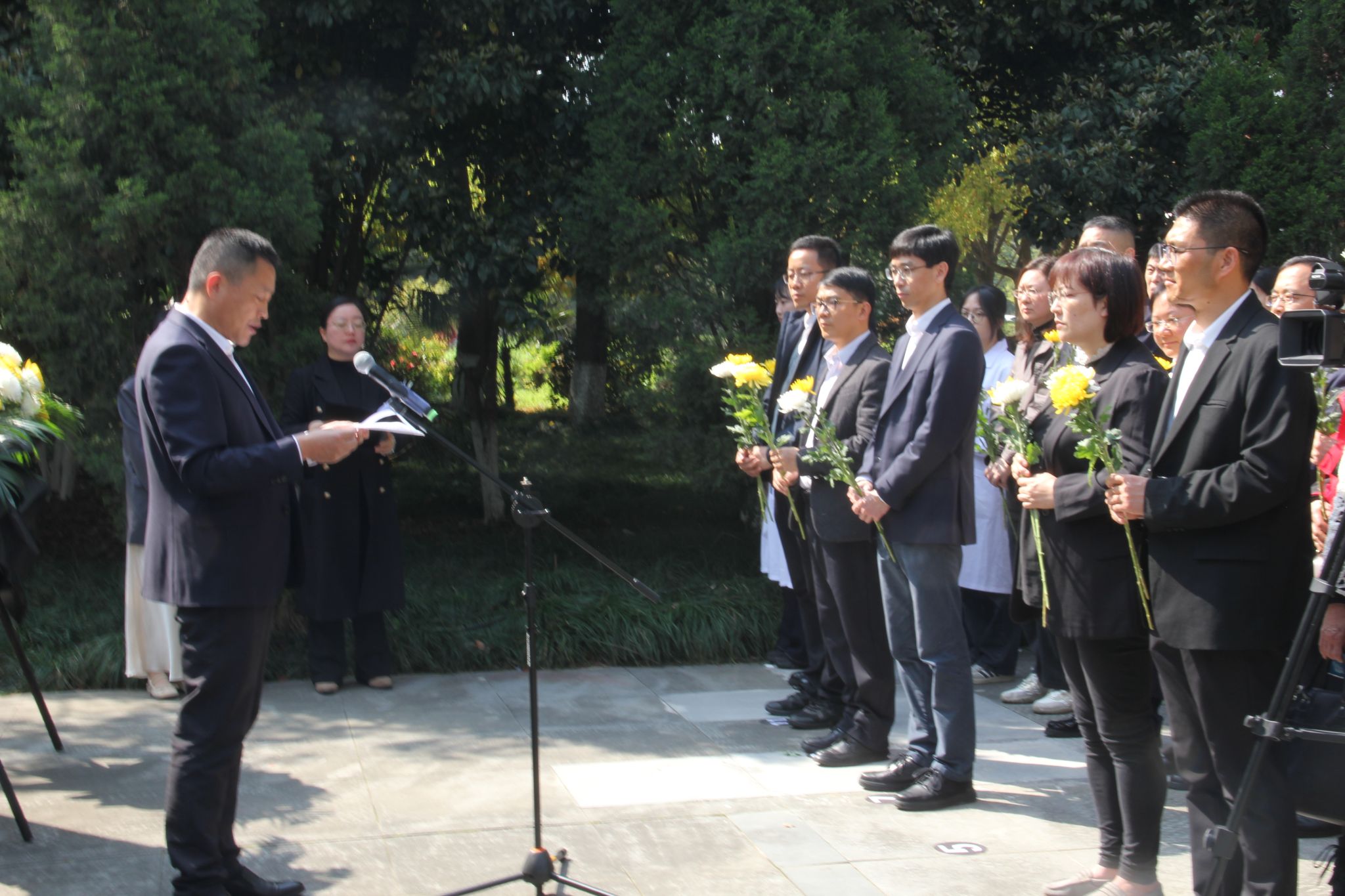 现场庄严肃穆,全体人员面向无语良师碑肃立,向遗体和人体器官捐献者三鞠躬,致以最崇高的敬意与最深切的缅怀。